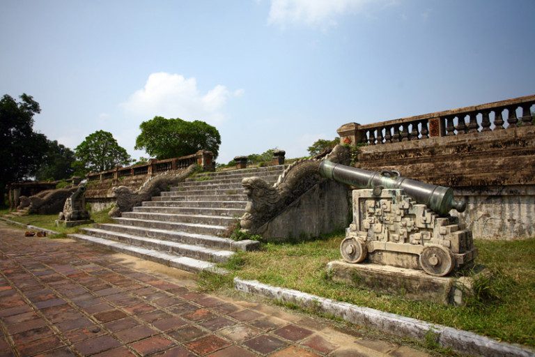 Cũng bởi chiến tranh, bao nhiêu công trình trên khắp dải đất hình chữ S này đã bị tàn phá, trong đó có nhiều công trình di sản. Huế là một ví dụ điển hình. Ai đã từng đến Huế, vào Kinh thành, vào Đại Nội (Hoàng cung) sẽ thấy vô cùng xót xa trước những công trình đổ nát, nhiều công trình chỉ còn nền móng. Các công trình trong Đại Nội bị phá hủy nhiều nhất trong 3 cuộc chiến: Đó là sự kiện thất thủ Kinh thành năm 1885, cuộc chiến Việt – Pháp năm 1947 và cuộc chiến Mậu Thân 1968. Trong Tử Cấm thành (bên trong Đại Nội), từ ngoài vào trong, các kiến trúc chính: Điện Cần Chánh, Càn Thành, cung Khôn Thái, lầu Kiến Trung, cùng hàng chục công trình phụ trợ khác bị phá hủy hoàn toàn. Điều đáng mừng, là trong năm 2024, Dự án phục dựng Lầu Kiến Trung – công trình trong Tử Cấm thành xây thời vua Khải Định, đã hoàn thành, đem lại sức sống mới cho Tử Cấm thành, vốn nhiều năm qua hầu như chỉ là bãi đất trống. Trước đó, Lầu Kiến Trung chỉ còn phần nền móng với bậc cấp, và việc phục dựng công trình này là cả một sự kỳ công to lớn, và số phận công trình này quả là may mắn. Hiện Trung tâm bảo tồn Di tích Cố đô Huế đang nỗ lực để tái thiết, phục dựng những công trình trong Đại Nội, song có quá nhiều khó khăn trên nhiều phương diện nên có lẽ hàng chục năm nữa mới có thể thấy một Đại Nội có diện mạo tráng lệ như thời hoàng kim triều Nguyễn.