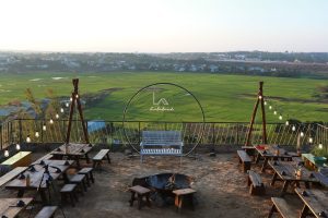 Một quán nướng dân dã giữa sườn đồi nhìn thẳng ra thung lũng, Lalaland mang đặc trưng của núi rừng Tây Nguyên trong từng hình thái kiến trúc.