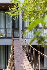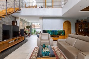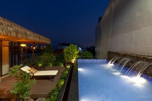 Các không gian ngoài nhà như sân vườn, ao cá và hồ bơi trên mái là những điểm nhấn đặc thù, mang đến sự khác biệt cũng như thể hiện chất lượng cuộc sống cao và cái gu của gia chủ.