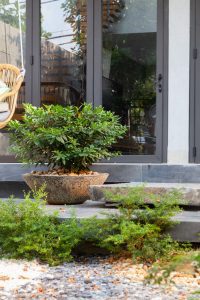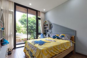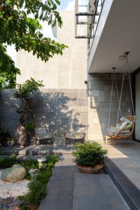 Ngôi nhà nhỏ mang hơi hướng nhiệt đới đặc trưng của khí hậu Sài Gòn và miền Nam Việt Nam nói chung. Với việc kết hợp giữa những mảng + khối nửa đặc nữa rỗng, ngôi nhà được thiết kế tận dụng tối đa ánh sáng tự nhiên, hạn chế xây tường ở mặt ngoài, thay vào đó là hệ cửa kính đóng mở linh hoạt. Chúng tôi đã tạo nên một sự kết nối giữa tự nhiên và con người sống bên trong. Đồng thời đưa vào đó những vật liệu quen thuộc như gỗ, đá, gạch thông gió, mái lá…